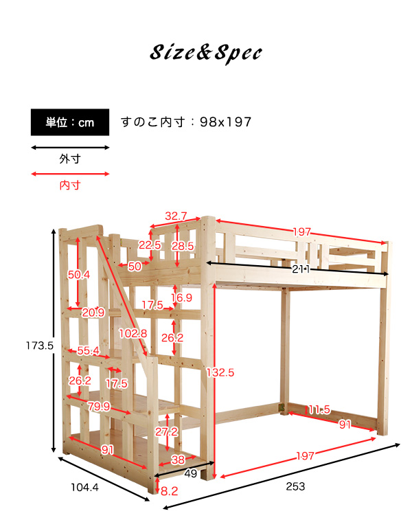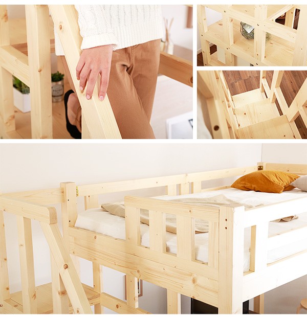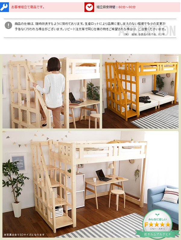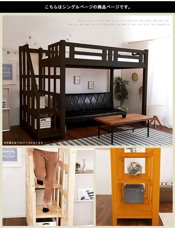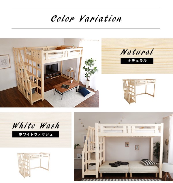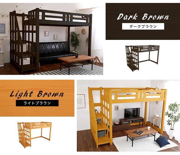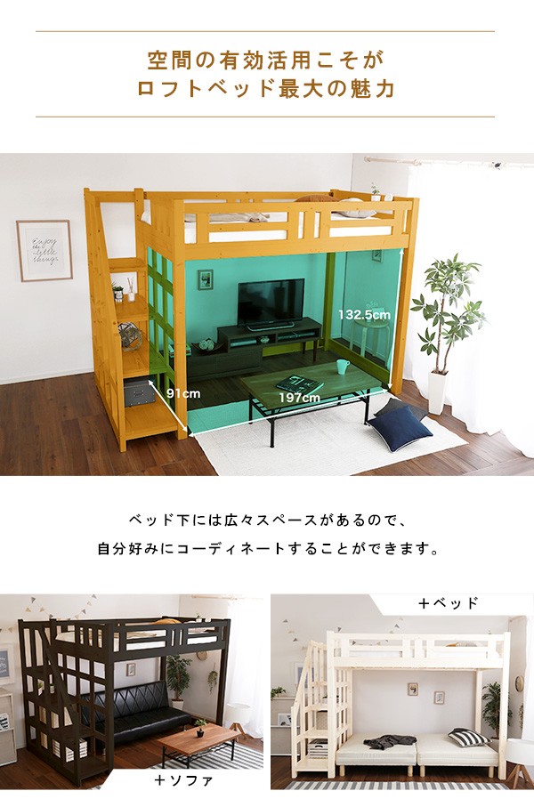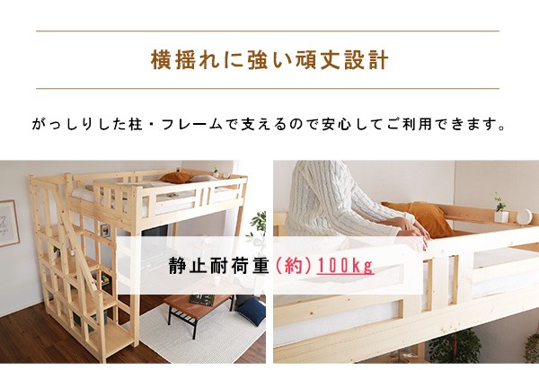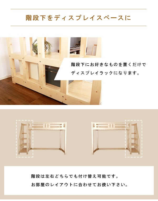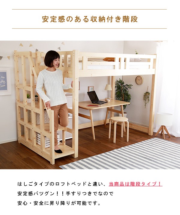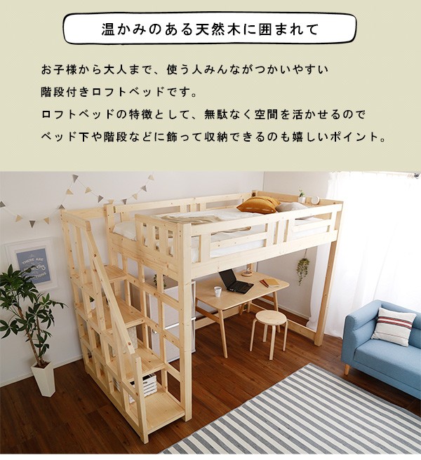 階段付き木製ロフトベッド(シングル) Stevia-ステビア- ロフトベッド 天然木 階段付き すのこベッド すこの 木製ベッド 子供 キッズ 木製 シングル