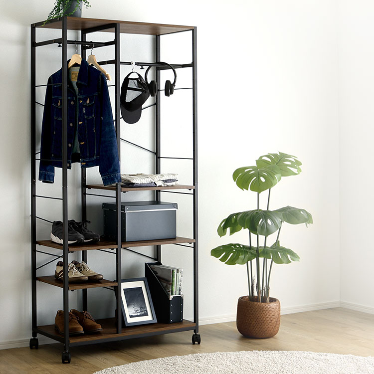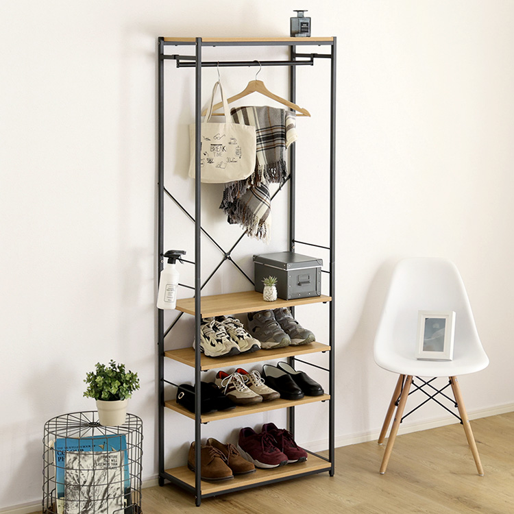 調節可能シューズラック付きハンガーラック!