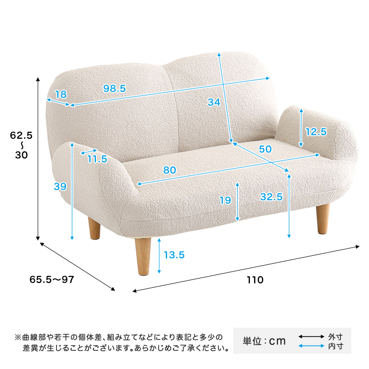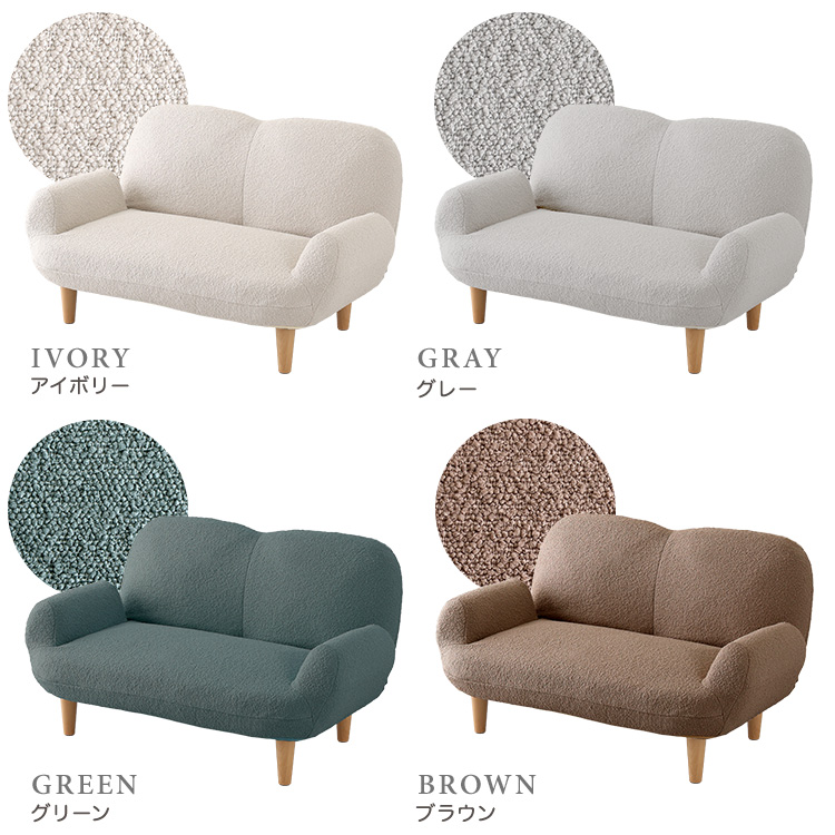 大人かわいいインテリア ブークレソファ 2人掛け【Chammy -チャミー-】