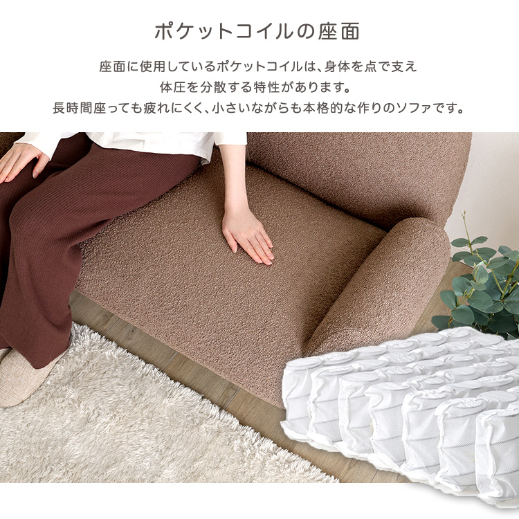 座面にはポケットコイルを使用しているので、長時間座っても疲れにくく、機能性も兼ね備えています。