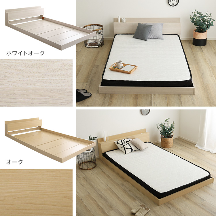 デザインフロアベッドはタブレットも立て掛けられる宮棚・2口コンセント付き!