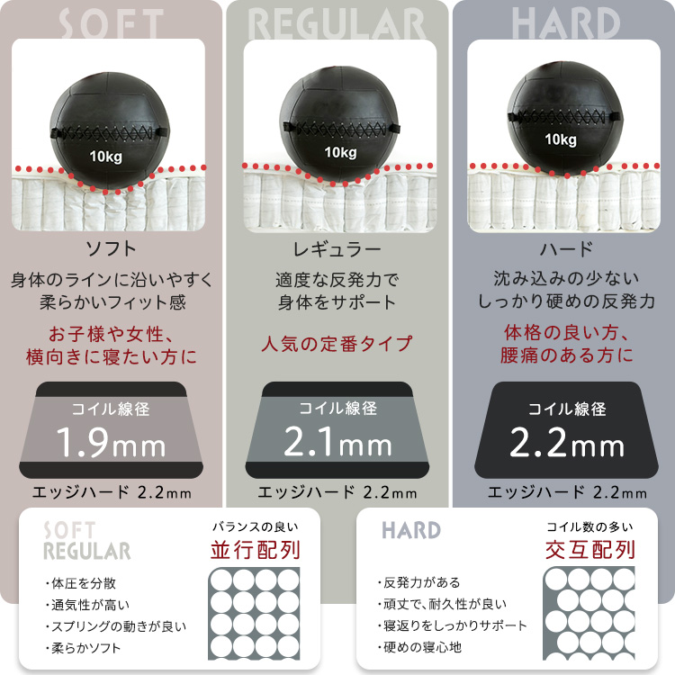 (約)幅97×奥行195×高さ26cm【コイル数:ソフト・レギュラー:465個、ハード:504個】