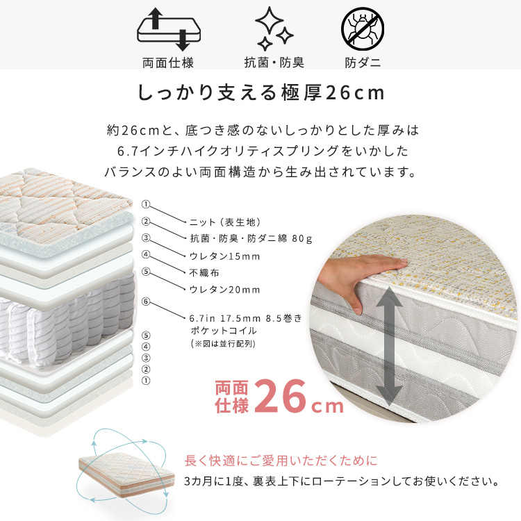 ※3ヶ月に1度、表裏上下にローテーションをしてご使用ください。
