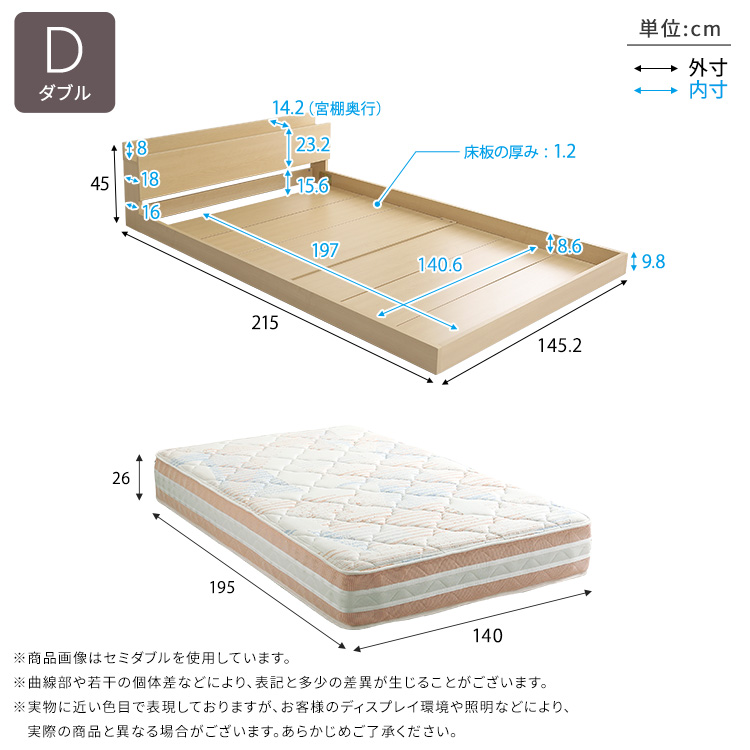 マットレスD:(約)幅140×奥行195×高さ26cm(コイル数:682個)