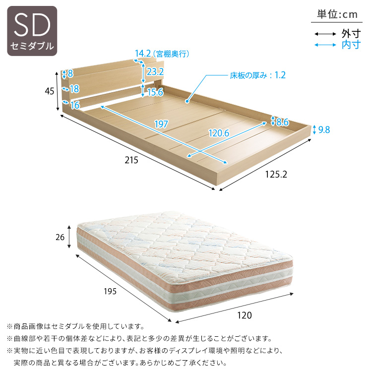 ベッドSD:(約)幅125.2×奥行215×高さ45cm