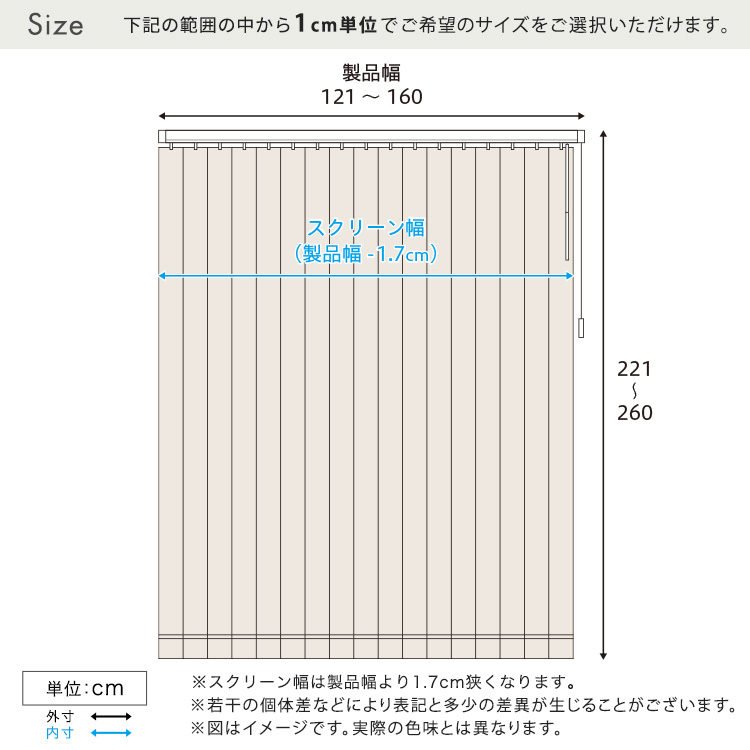 1cm単位のオーダー対応!バーチカルブラインド 幅121~160cm×高さ221~260cm