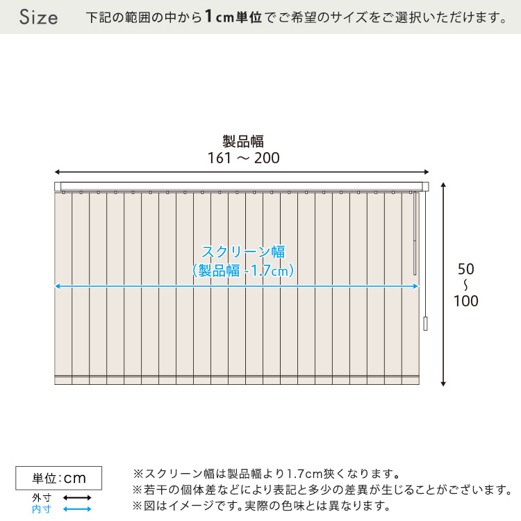 1cm単位のオーダー対応!バーチカルブラインド 幅161~200cm×高さ50~100cm