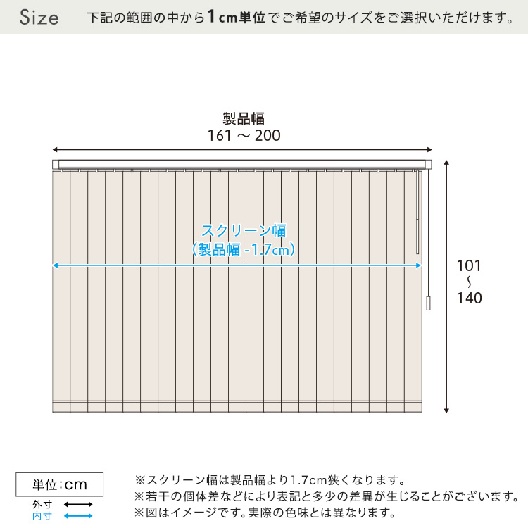 1cm単位のオーダー対応!バーチカルブラインド 幅161~200cm×高さ101~140cm