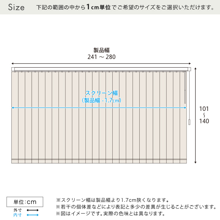 1cm単位のオーダー対応!バーチカルブラインド 幅241~280cm×高さ101~140cm
