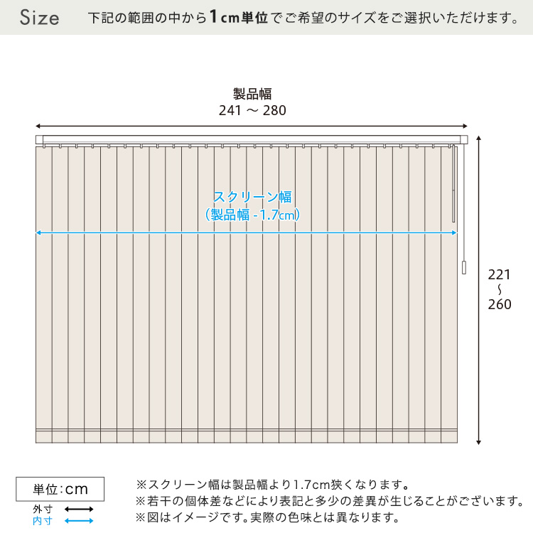 1cm単位のオーダー対応!バーチカルブラインド 幅241~280cm×高さ221~260cm