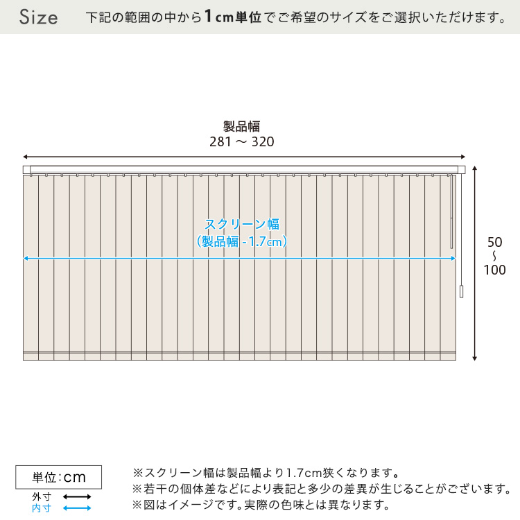 1cm単位のオーダー対応!バーチカルブラインド 幅281~320cm×高さ50~100cm