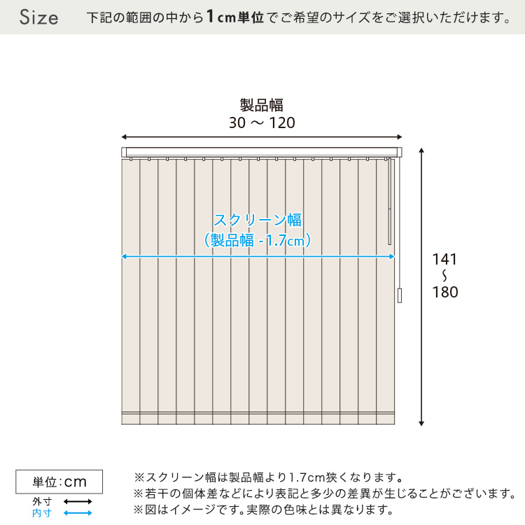 1cm単位のオーダー対応!バーチカルブラインド 幅30~120cm×高さ141~180cm
