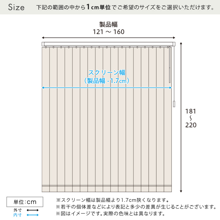 1cm単位のオーダー対応!バーチカルブラインド 幅121~160cm×高さ181~220cm
