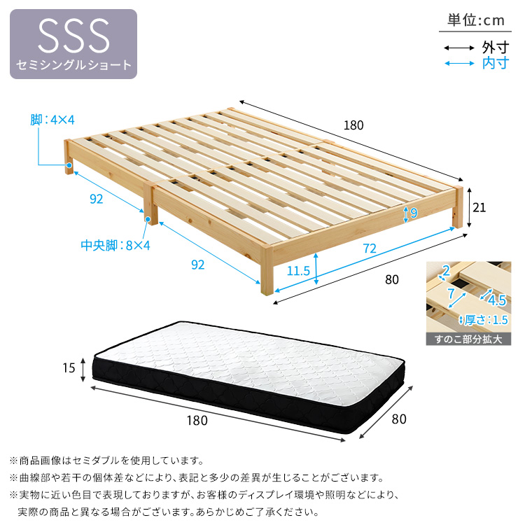 マットレスSS:(約)幅80×奥行195×高さ15cm(コイル数:403個)