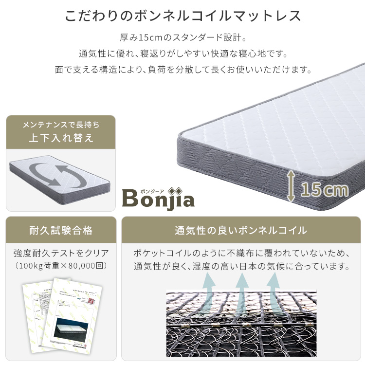 マットレス:ボンネルコイル、ウレタンフォーム、不織布、フェルト