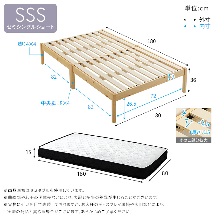 ベッドSSS:(約)幅80×奥行180×高さ36cm
