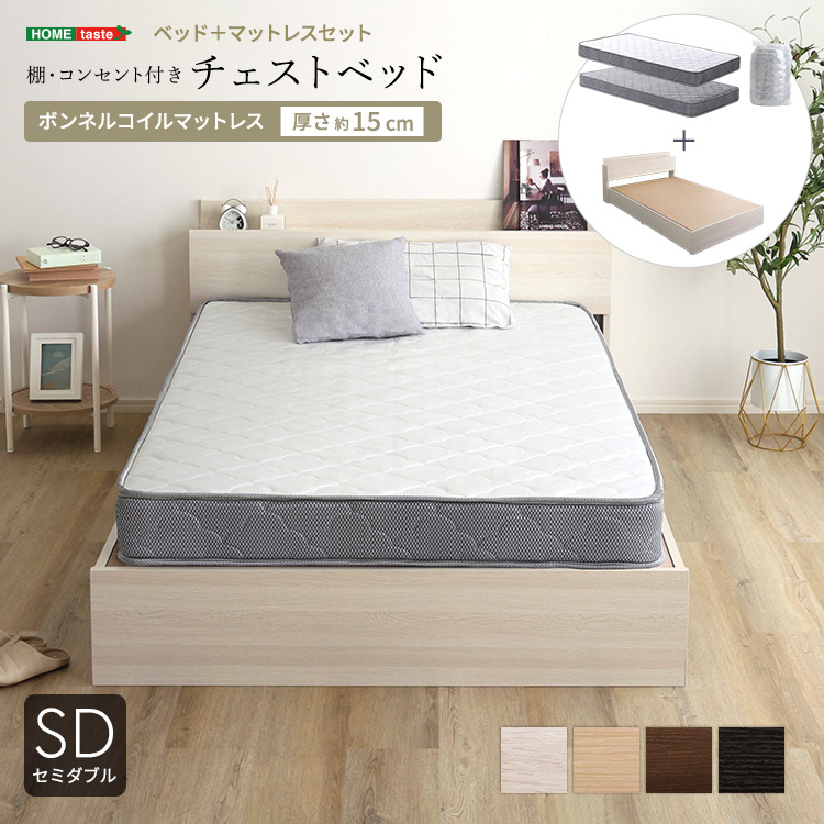 棚・コンセント付きチェストベッド ボンネルコイルマットレスセットは
