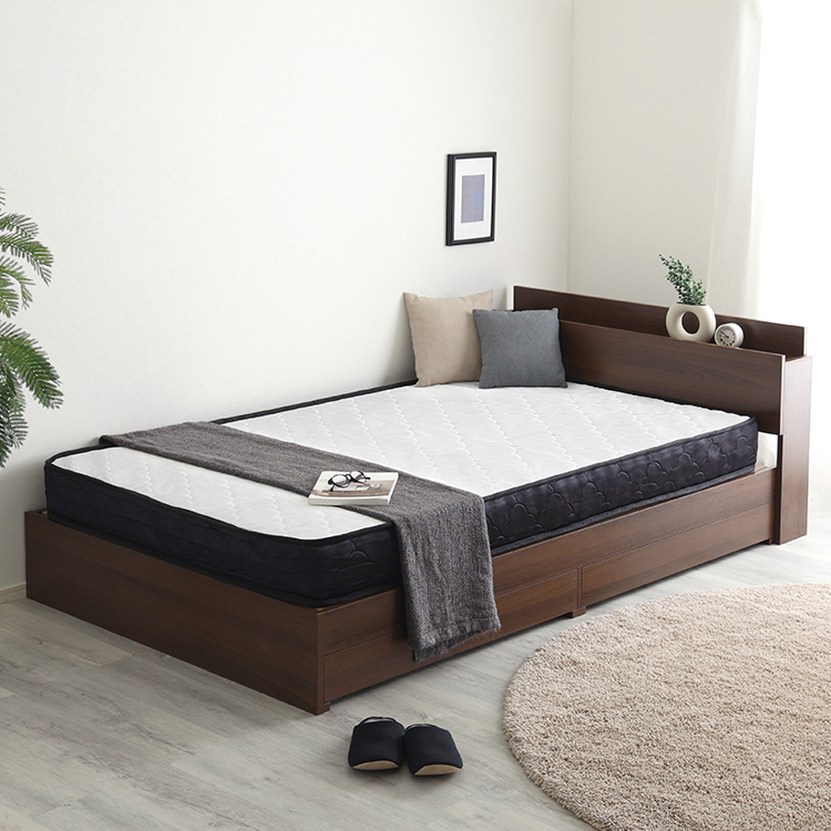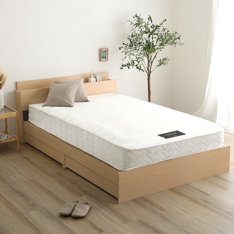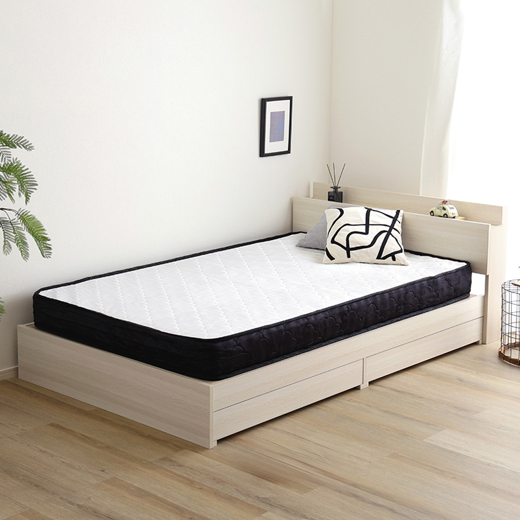 棚・コンセント付きチェストベッド 日本製ポケットコイルマットレスセットは