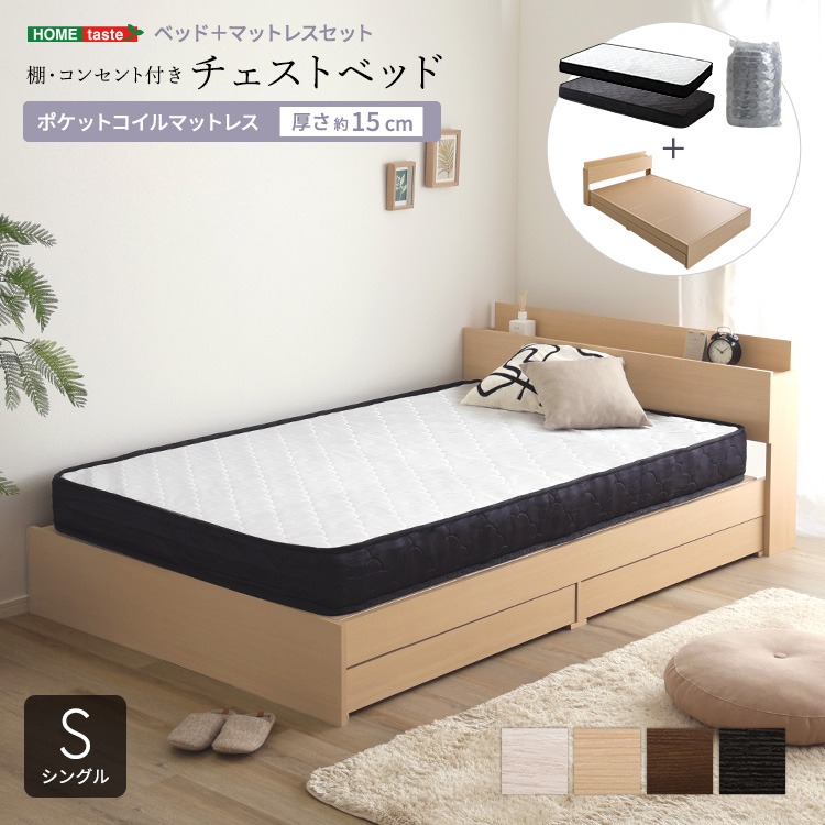 棚・コンセント付きチェストベッド ポケットコイルマットレスセット!