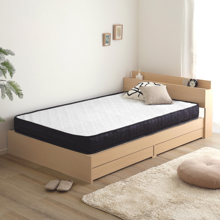 棚・コンセント付きチェストベッド ポケットコイルマットレスセットは