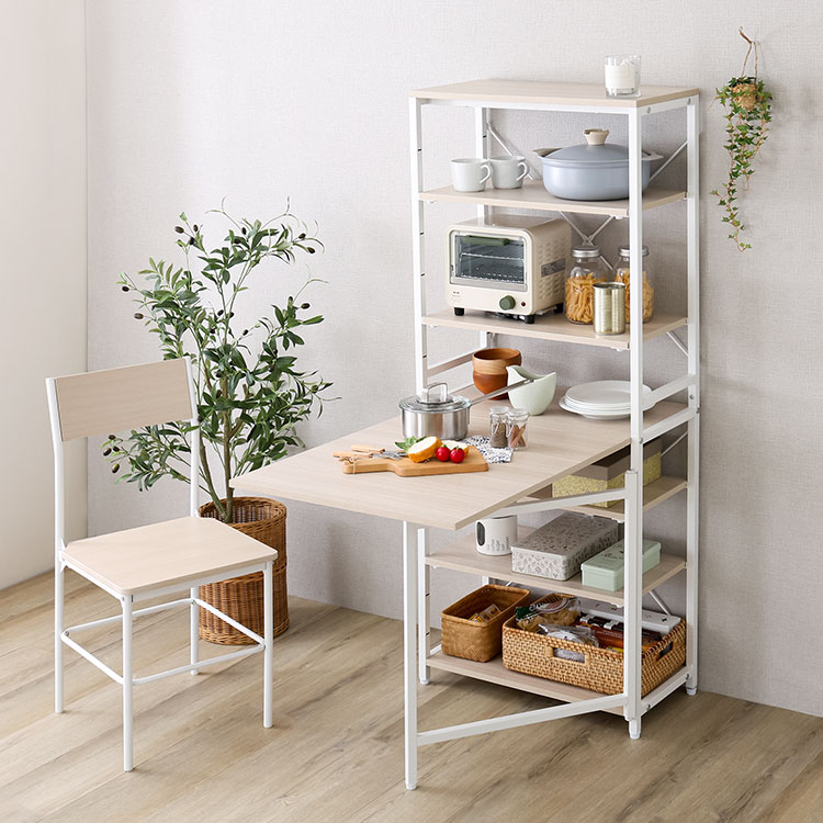 さわやかな 折りたたみテーブル付きキッチンラック!