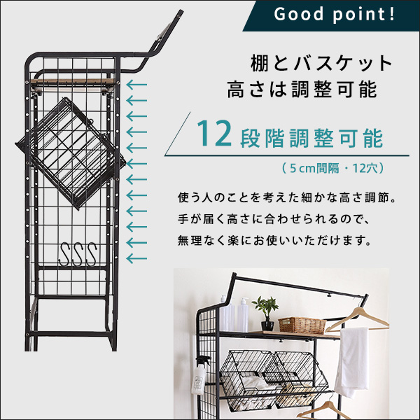 洗濯物を一時的にかける時に便利なハンガーバーが付いています。