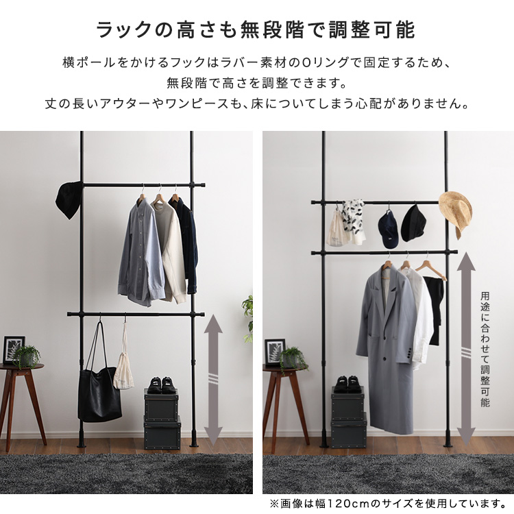 高さ調節することができるのでコートなど丈が長い衣類も収納できます。