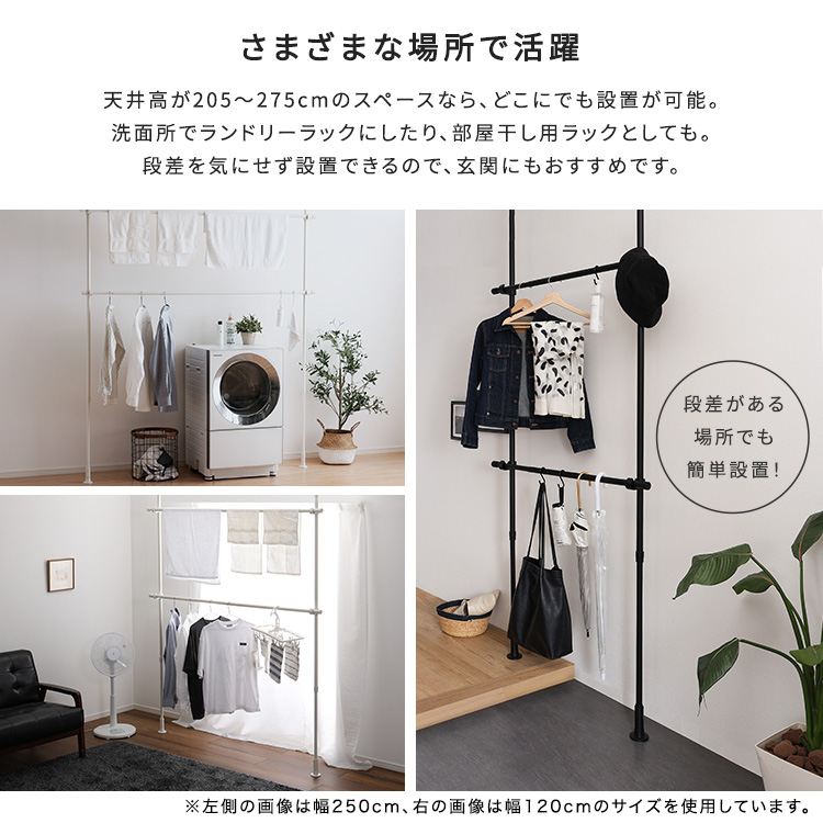 床と天井があれば、お部屋のどこでも使う事が出来る、おしゃれなつっぱりハンガーラック!