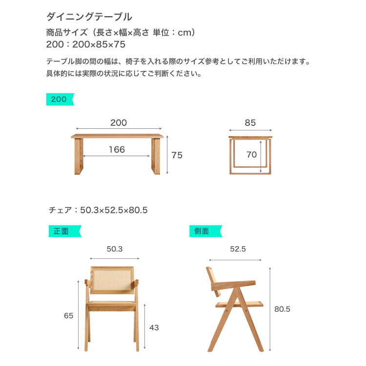 この商品は、アメリカンオーク無垢材を使用した2mのダイニングテーブルとラタンダイニングチェア4点の計5点セットです。3本の金属支え棒と強固な金具がテーブルの耐久性と安定感を提供します。4本の支え棒が付いています。