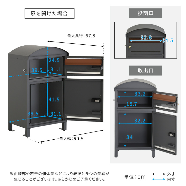 ポスト付き天面ラウンド型宅配ボックス 宅配2段タイプ