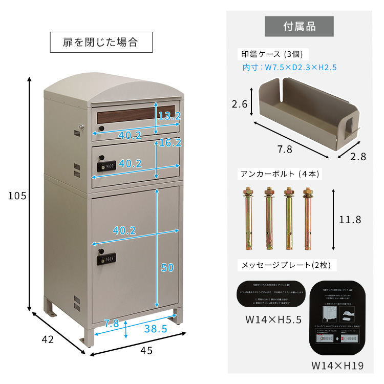 付属品:印鑑ケース×3個、アンカーボルト、宅配業者向けマニュアル