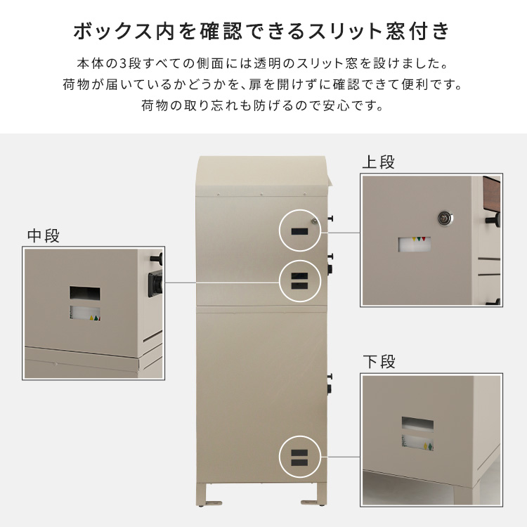 宅配用の収納が2段ありますので、大きい荷物と小さめの荷物であれば、配達が被っても安心です。