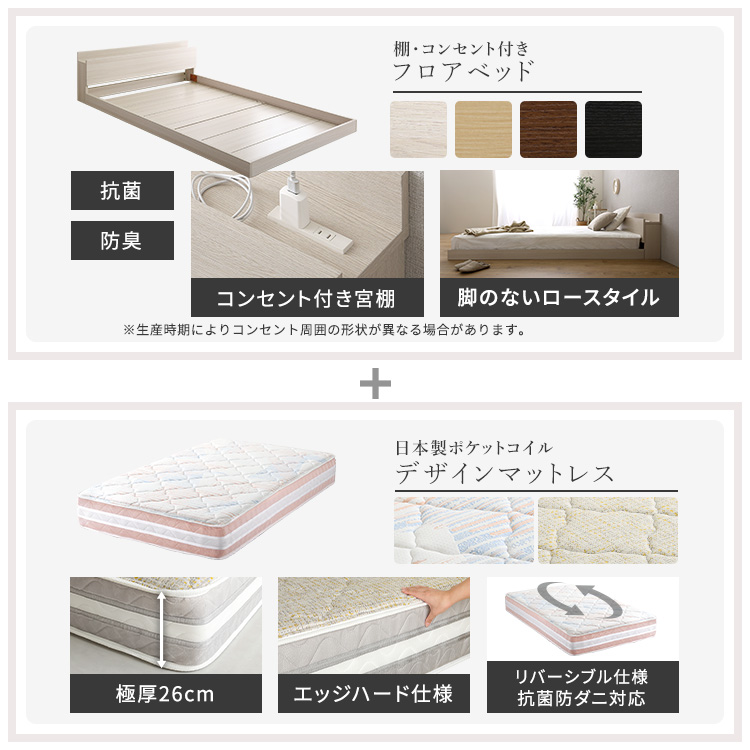 デザインフロアベッド 日本製ポケットコイルデザインマットレスセット(シングル)