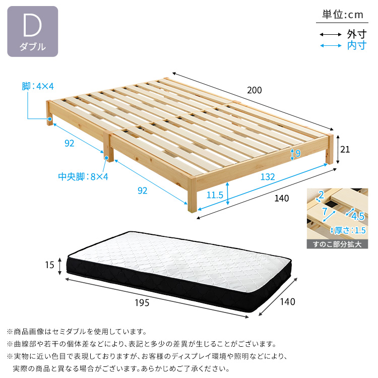 マットレスD:(約)幅140×奥行195×高さ15cm(コイル数:682個)