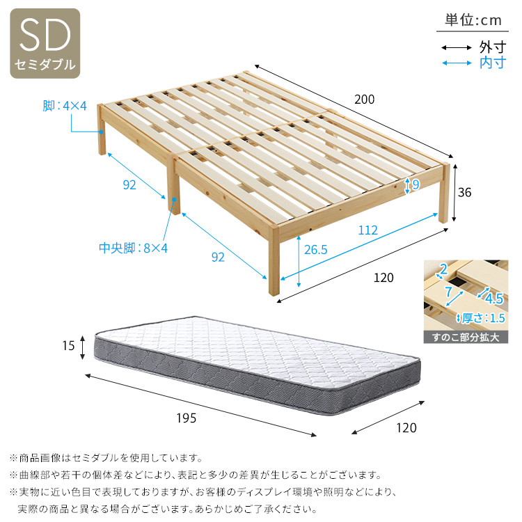 マットレスSD:(約)幅120×奥行195×高さ15cm(コイル数:336個)