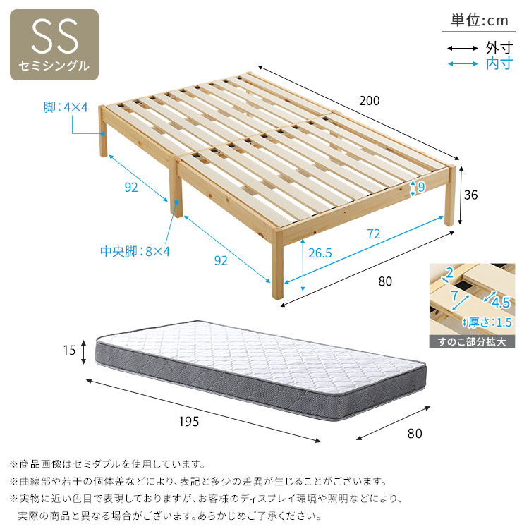 マットレスS:(約)幅97×奥行195×高さ15cm(コイル数:308個)