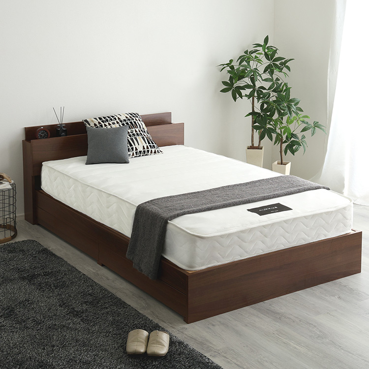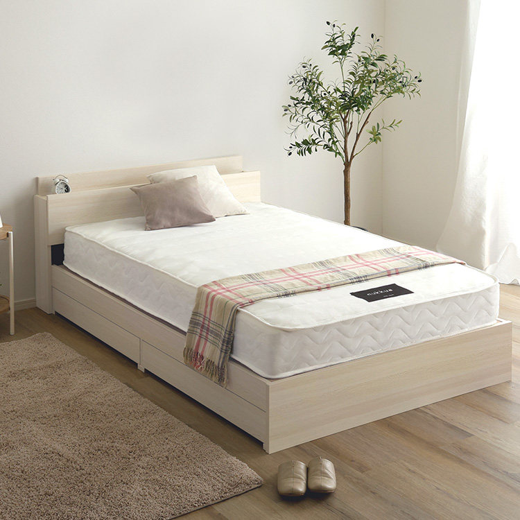 棚・コンセント付きチェストベッド 日本製ポケットコイルマットレスセットは